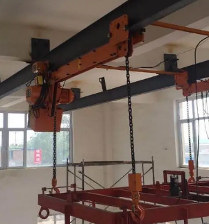 比如在汽車焊涂聯合車間中就采用了AGV、輥道滑翹的新型設備,也使用了環鏈型電動葫蘆及KBK軌道吊具聯合運輸的方式。這里所用的環鏈葫蘆種類較多,既有平時常見的黃色的鏈條式電動葫蘆,還有體型較小的PK式環鏈電動葫蘆,這兩種電動葫蘆各有千秋,在執行吊裝工作時比鋼絲繩電動葫蘆更能符合汽車車間對零部件精密吊裝的需求。